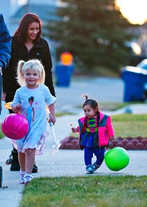 Costumed children, eager to get candy yet reluctant to approach the adults in scary costumes doling it out, gathered Oct. 27 for this year's Trunk or TreatThe 90th Security Forces Group Top 4 hosted the second Trunk-or-Treat, their annual Halloween celebration, during which different units within