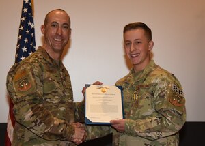 Two defenders from the 790th Missile Security Forces Squadron were awarded Air Force Commendation Awards at a ceremony Nov. 15, 2019, in the base theater on F. E. Warren Air Force Base, Wyoming.Airmen 1st Class Cristopher Horton and Christian Reid, 790th MSFS Foxtrot Flight Night Alarm Response