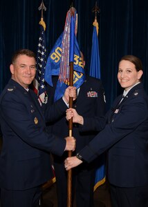 Colonel Carolyn Ammons assumed command of the 90th Mission Support Group during an assumption-of-command ceremony, June 21, 2019, on F.E. Warren Air Force Base, Wyo.Colonel Peter Bonetti, 90th Missile Wing commander, served as the presiding officer, welcoming Ammons and her family to the Mighty