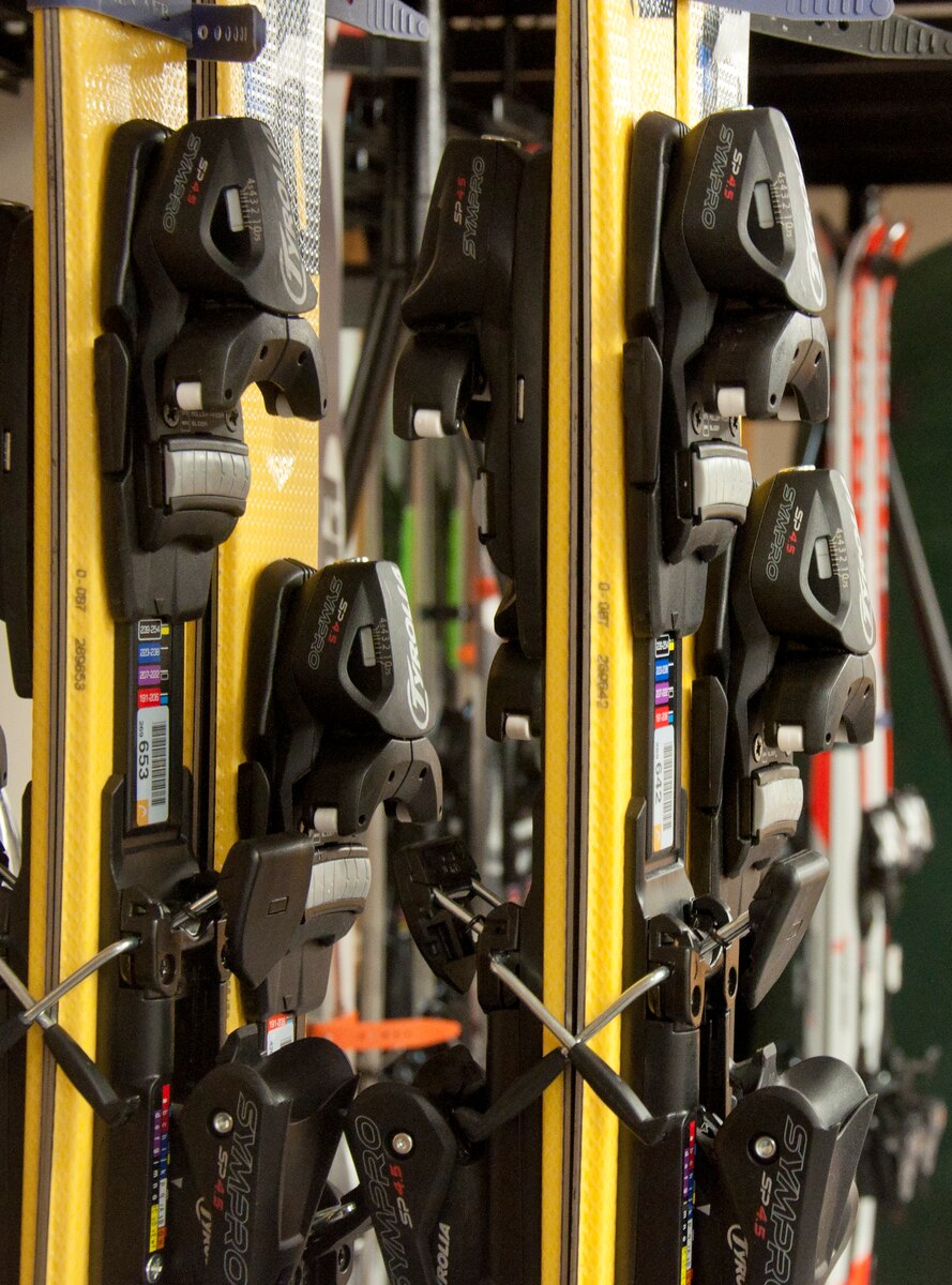 131108-F-GZ967-003 A rack full of various sets of skis lies in wait for customers to be fitted for the right size ski during the Outdoor Recreation‘s “Get Your Gear on” event Nov. 8. ODR has a variety of equipment available for rent and sells season passes to the local mountain ranges. (U.S. photo by Airman 1st Class Brandon Valle)