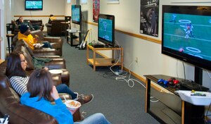 The 90th Missile Wing Chaplain's office hosted a Superbowl party Feb. 2 in the Airmen's Oasis for the Airmen living in the dorms. Nearly 50 Airmen came down to the basement of Bldg. 248 to enjoy the "Big Game." Airmen were treated with free food - including pizza, donuts, chips and cupcakes - a