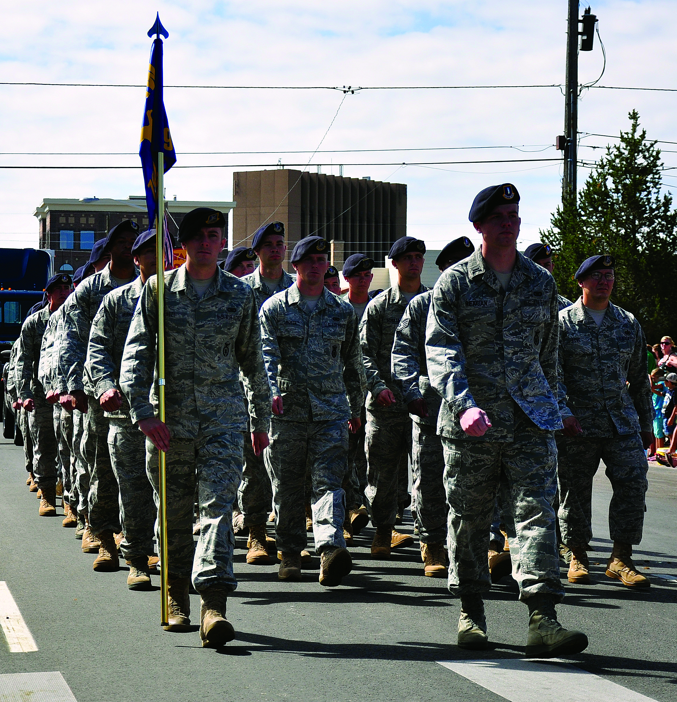 1st Lt. Joshua Reagan leads members of the 790th Missile Security Forces Squadron down the parade route July 24 during CFD. (U.S. Air Force photo by Capt. Rodney Ellison, Jr.)